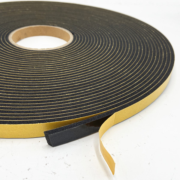 High-density double-sided PVC foam tape is made by 300-400kg/m3 density PVC foam. The foam sealant combines a closed-cell polyvinyl chloride foam substrate with a pressure-sensitive adhesive on both sides.